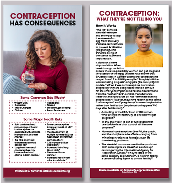Chemical Contraception is often times seen as a solution for sexually active women wishing to avoid pregnancy. This fact card explores the consequences of this form of contraception and makes the case for why it should be avoided.
